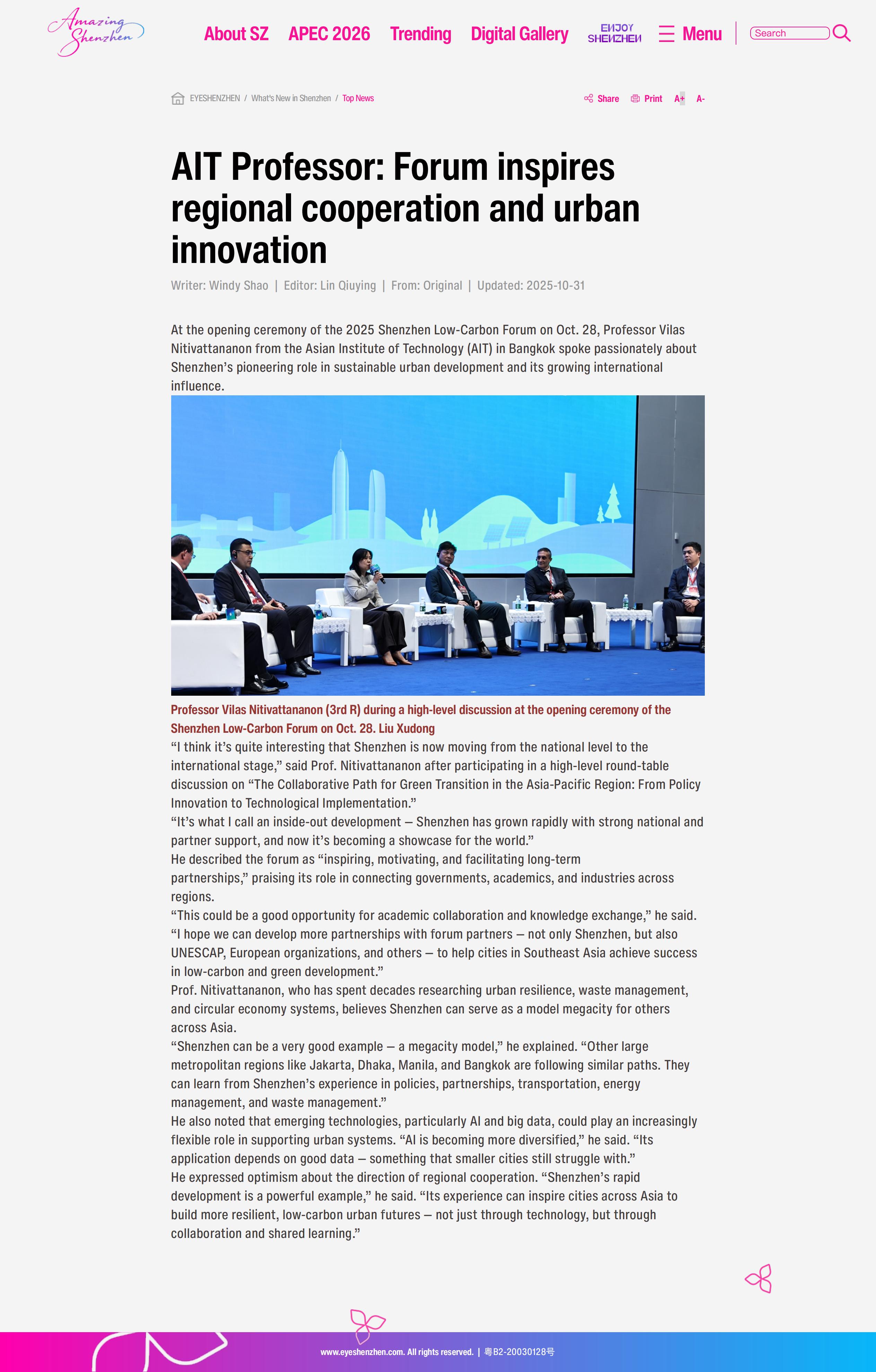EYESHENZHEN|AIT Professor: Forum inspires regional cooperation and urban innovation
