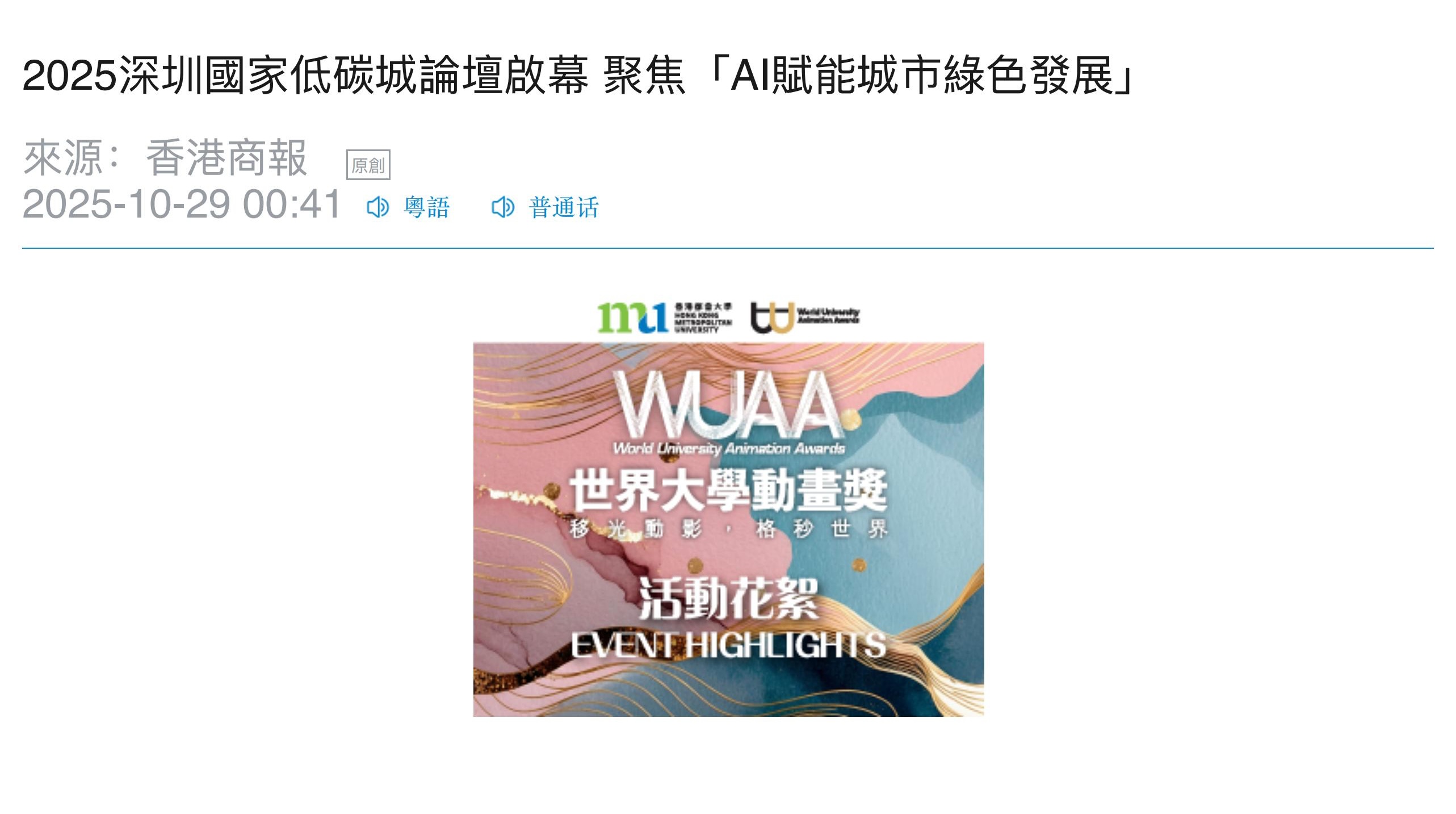 香港商報|2025深圳國家低碳城論壇啟幕 聚焦「AI賦能城市綠色發展」
